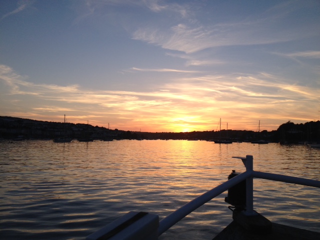 Meals on deck meant always eating with a view; the parade of boats in Falmouth Harbour, the breadth of sea and sky at Helford Creek.